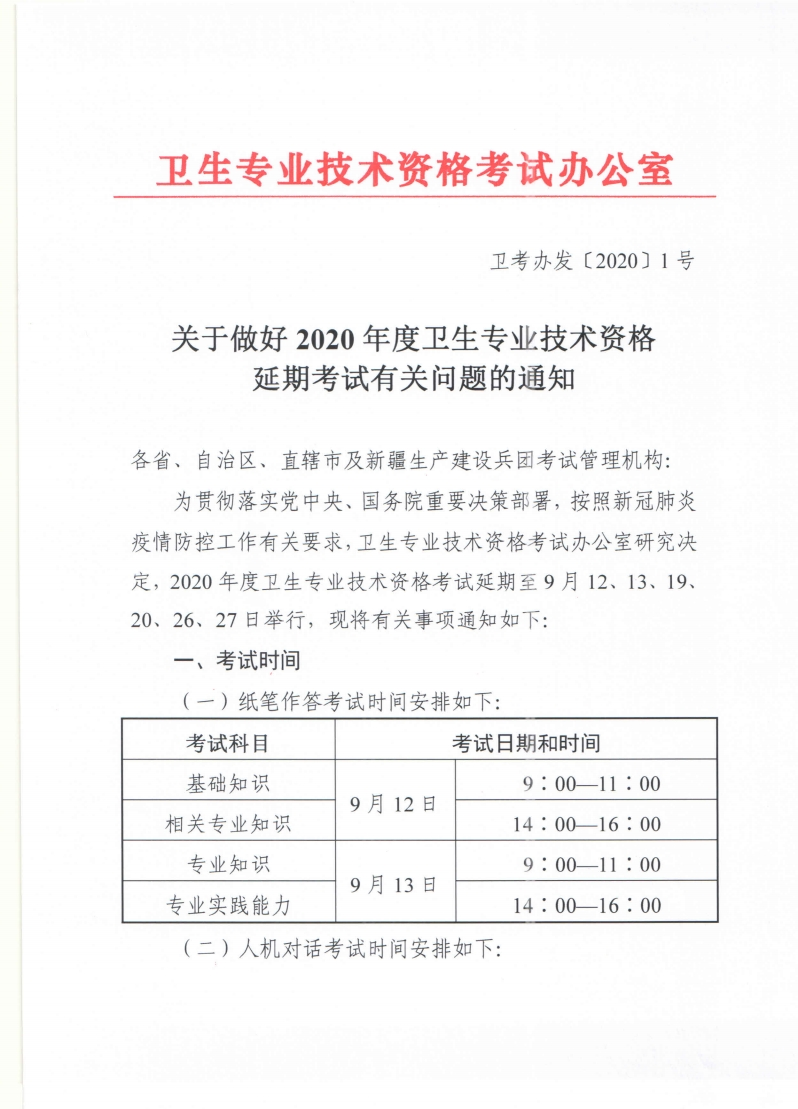 终于!万众期待的2020年卫生资格考试时间确定了!根据中国卫生人才网通知,2020年卫生资格考试时间为9月12、13、19、20、26、27日!详细内容如下: