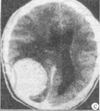 | 正确答案:C 解题思路:环形强化,环内低密度,明显占位效应,考虑脑脓肿。 |